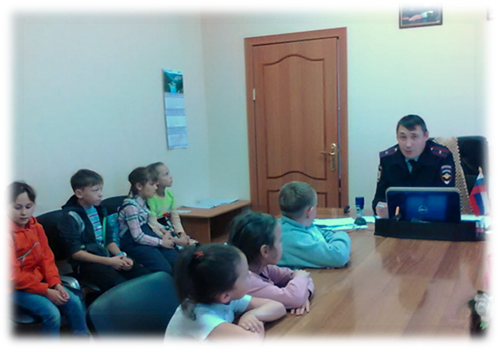 Экскурсия началась с «сердца полиции» — дежурной части. Сотрудник полиции И. Кашкаров рассказал ребятам о режиме работы, телефонных линиях, о процедуре подачи заявления в полицию, предупредил об исключении фактов баловства, ложных сообщений о преступлениях. Мальчишки и девчонки узнали, что за сутки в дежурную часть поступает много сообщений и заявлений о происшествиях по району, и все обращения граждан рассматриваются. Данный факт нам говорит о том, что профессия полицейского очень сложная и требует большой оперативности.